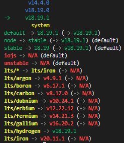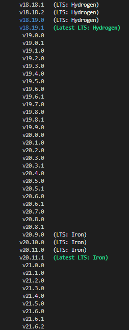 설치가능한 node version 목록은 아래 커맨드로 확인할 수 있다. (v0.1.14부터 조회됨)