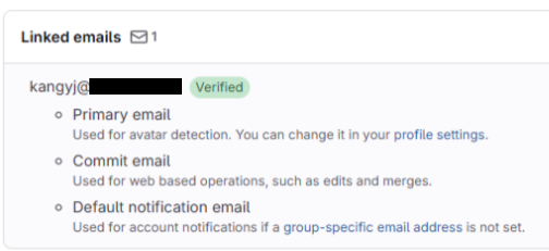remote: GitLab: You cannot push commits for 'kangyj@<company>.com'. You can only push commits if the committer email is one of your own verified emails.