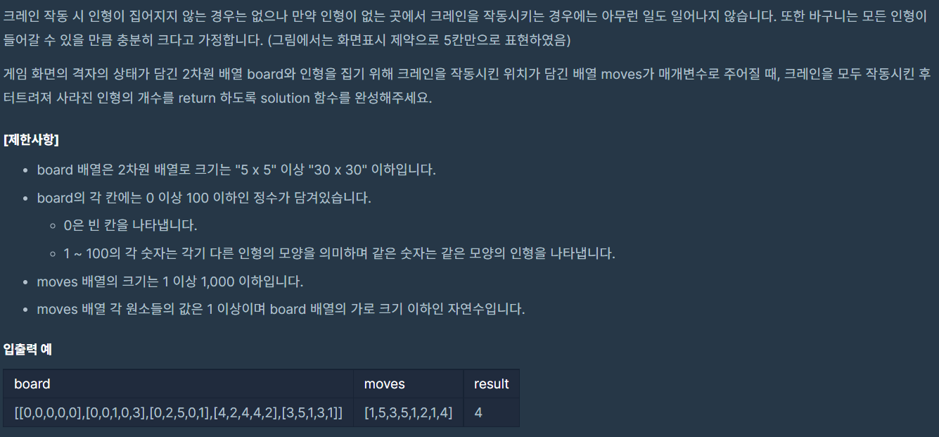 int solution(vector<vector<int>> board, vector<int> moves) {