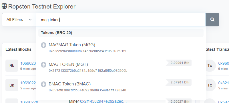 우리는 ropsten에서 발행할 것이기 때문에 우측 상단의 아이콘을 눌러 ropsten testnet을 선택해 https://ropsten.etherscan.io/ 로 이동해준다.