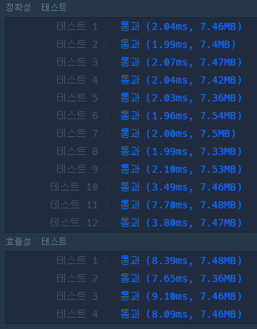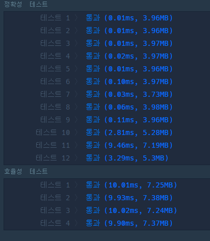 정확성 테스트는 성공했으나 효율성에서 시간초과가 난다.