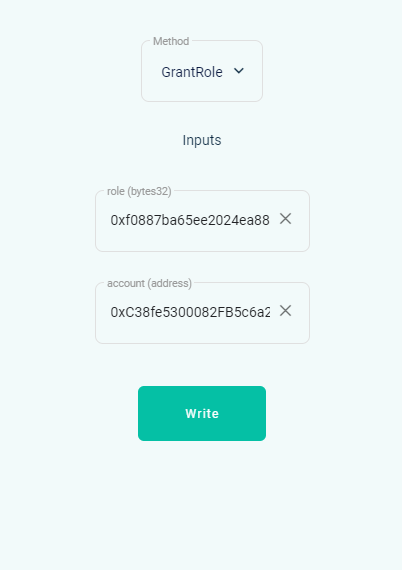 다른 지갑에도 발행/폐기 권한을 주고 싶으면 minter/burn_role을 선택해 role의 해시값을 받아오고