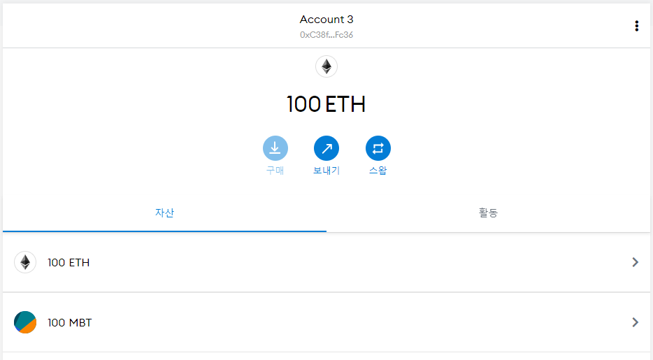 이제 메타마스크를 열면 잘 발행된 것을 확인할 수 있다.