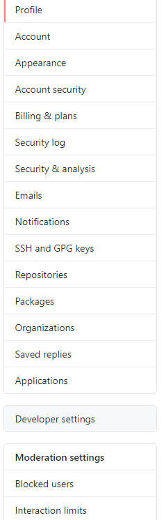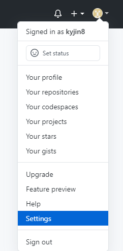 github 로그인 > 우측 상단 프로필 이미지 부분 드롭 메뉴에서 settings 선택