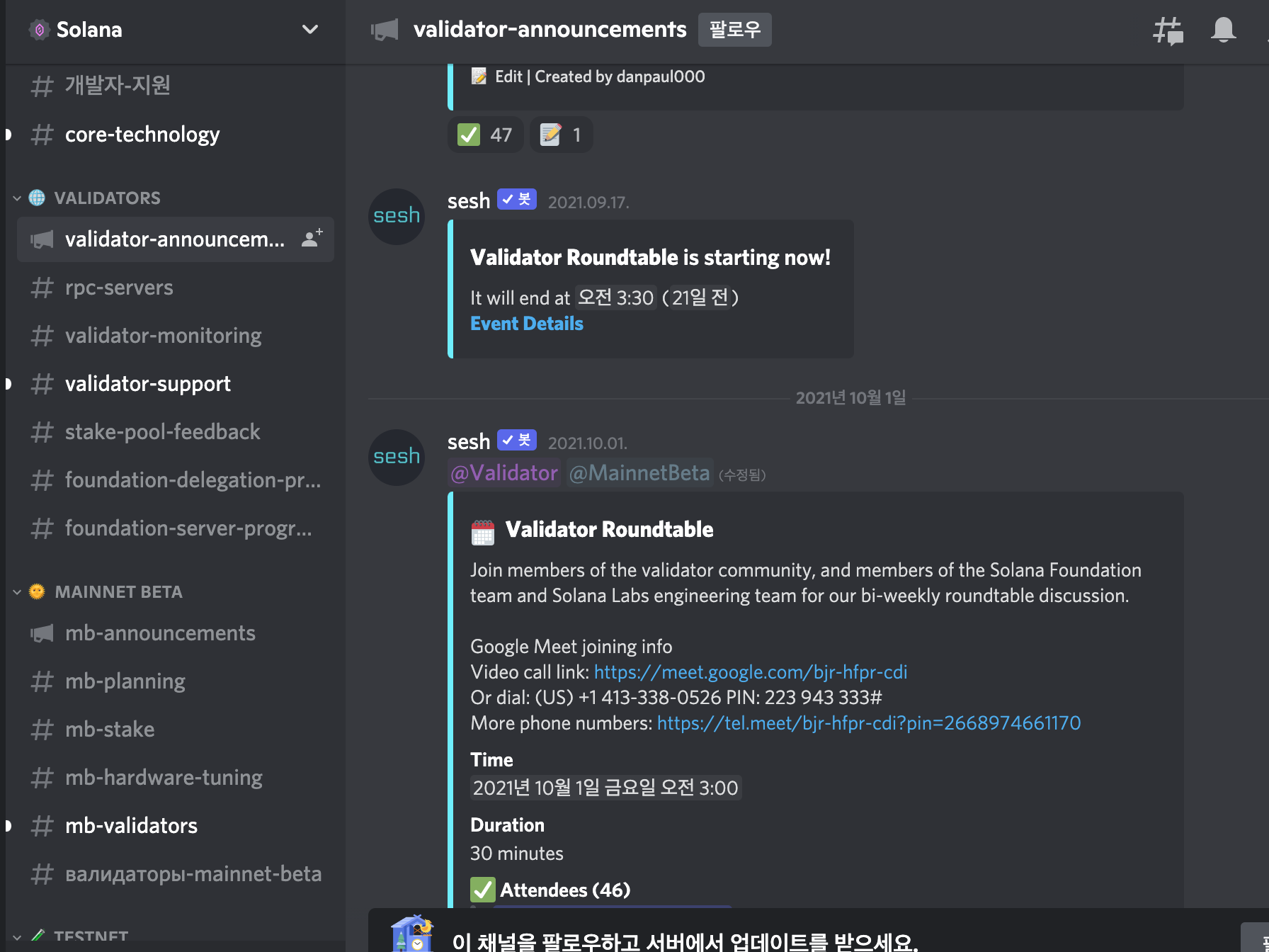 현재 1.6.27을 가장 많이 쓰고 있는 것으로 나오고 있다. 단 솔라나에서 어떤 변경사항 등으로 인해 더 상위의 노드 버전을 요구할 수 있는데, 이를 제 때 업그레이드 해주지 않으면 솔라나 측에서 해당 validator의 서버를 중지시킬 수도 있다고 한다. 그러므로 디스코드에서 validators announcements를 수시로 확인하여 공지사항 및 변경사항을 제때 확인하고 반영해야 한다.
