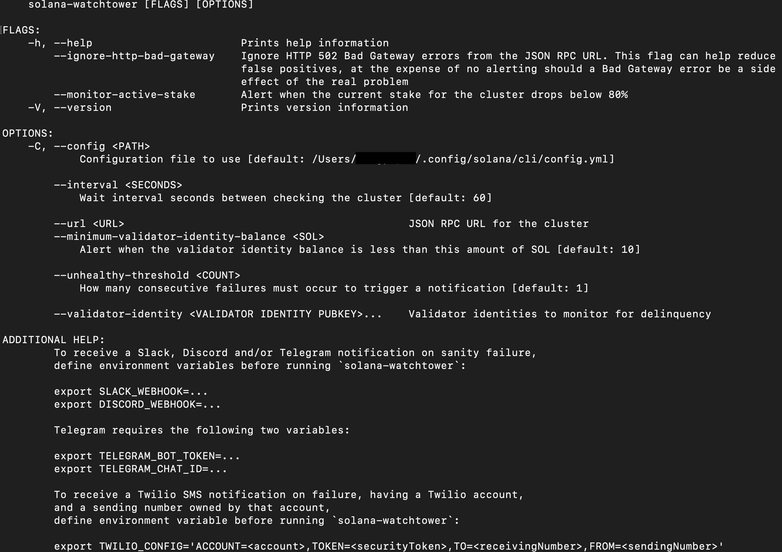 자세한 내용은 solana-watchtower --help 로 확인 가능하다.