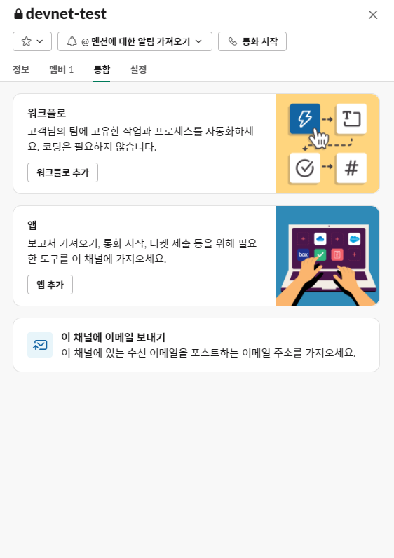 오류 알림 메시지를 받을 채널을 설정하고 슬랙 url을 받기 위해 슬랙에서 웹훅을 설정해주자.