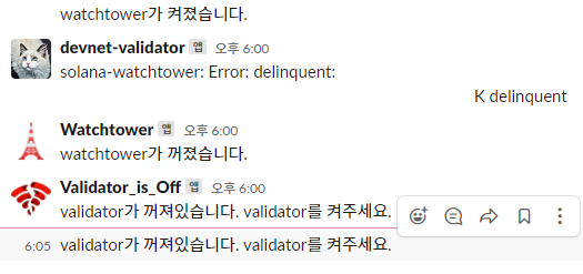 솔라나는 슬랙 웹훅을 환경변수로 설정해두고 solana-watchtower cli를 실행하면 알아서 오류메시지만 슬랙으로 보내주는 기능을 지원한다.
