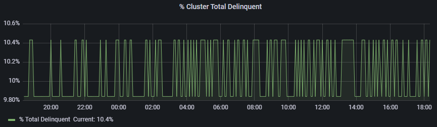현 네트워크에서 active stake 중 밸리데이터가 비활성화 상태라서 delinquent 된 stake 의 비율도 보여주는 듯.
