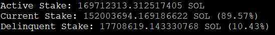 현 네트워크에서 active stake 중 밸리데이터가 비활성화 상태라서 delinquent 된 stake 의 비율도 보여주는 듯.