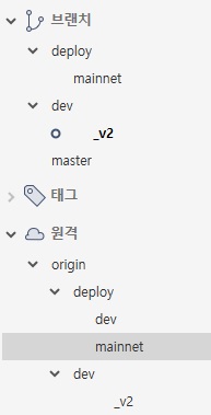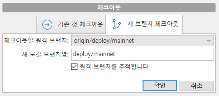 브랜치 란에 destination 브랜치가 있다면 더블클릭하고, 없다면 아래의 원격 란에서 더블클릭해 체크아웃해올 수 있다.